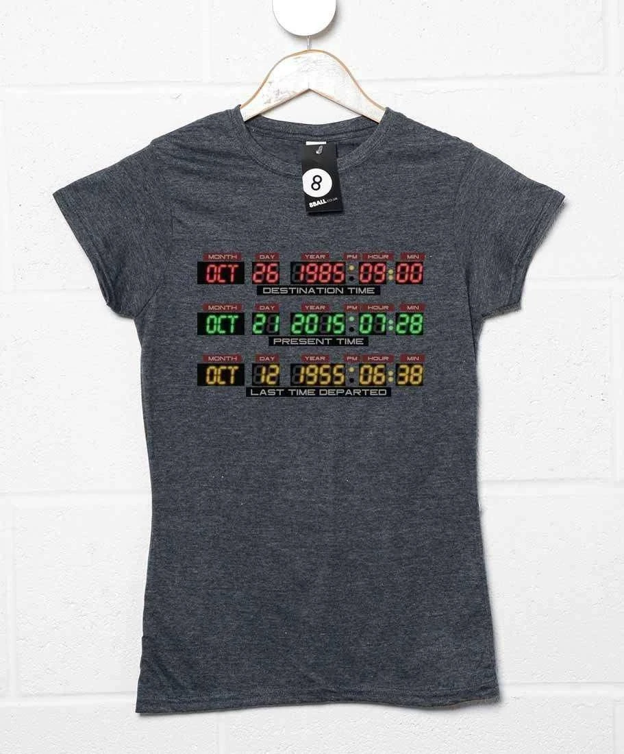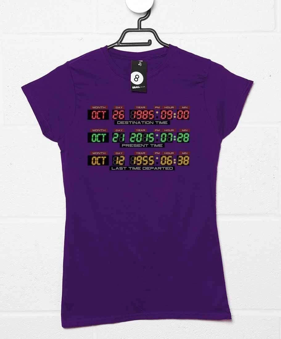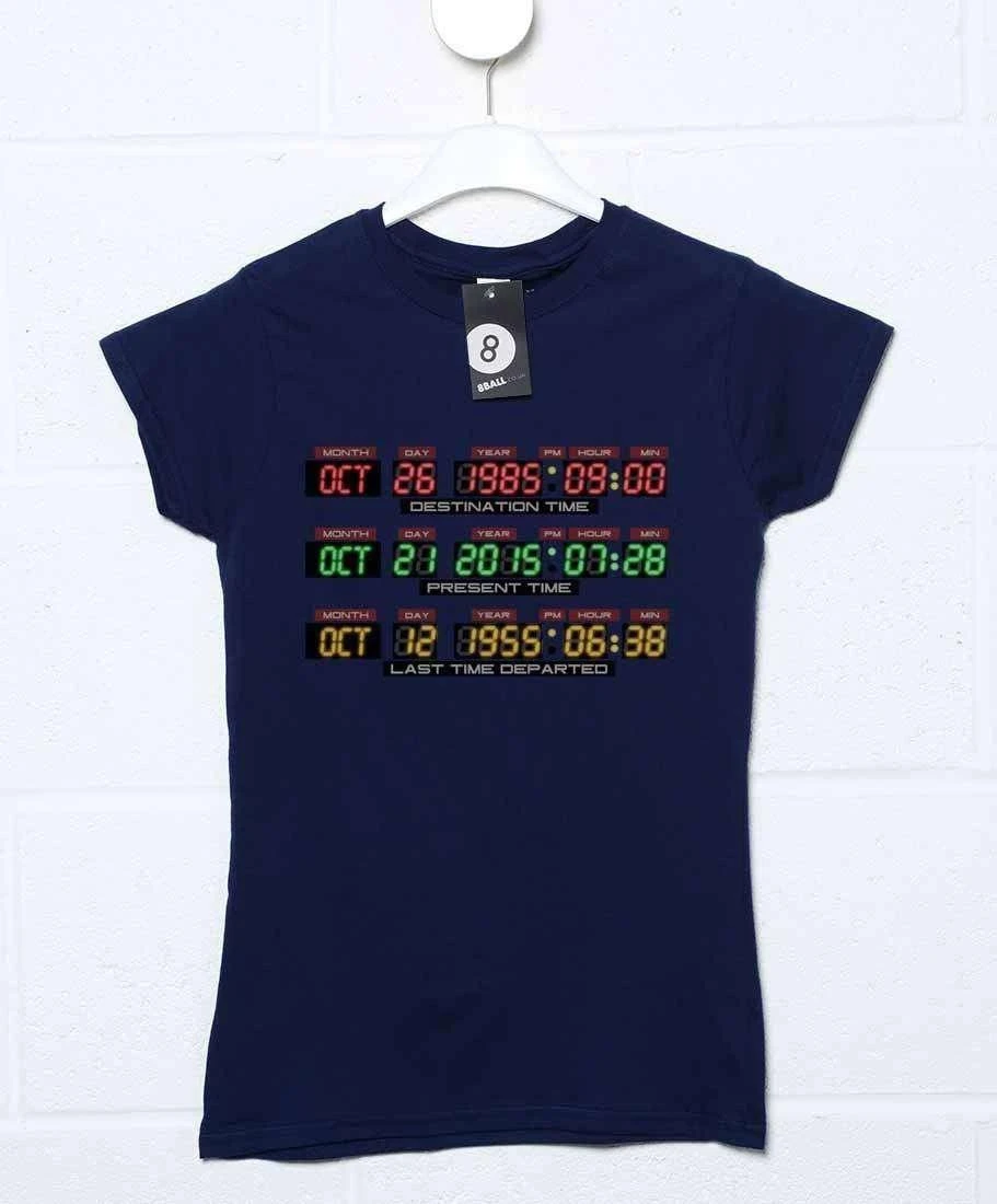 We are now living in the future as the time Marty travelled to in the 2nd Back to the Future movie has arrived – October 21st 2015! (Insert moan about of the lack of hover boards here). This awesome BTTF inspired ladies t-shirt is based on the dashboard of Doc Brown’s Delorean time machine, displaying the dates October 26 1985 (labelled ‘Destination Time’, the present in the film series), October 21st 2015 (labelled Present time, the future in the films) and October 12th 1955 (labelled ‘Last Time Departed’, the setting for the third movie). Show your love for one of the best film trilogies ever with this! Please note this is a BTTF inspired product, not officially licensed.