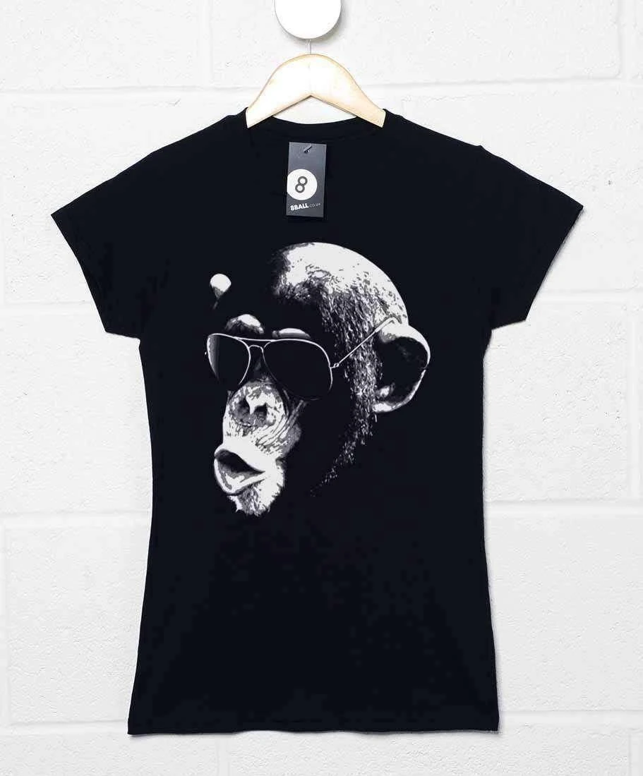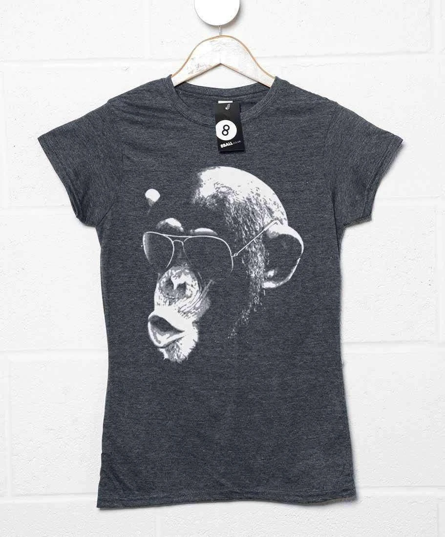 This ladies chimp t-shirt has a big white print of a picture of a cool chimp rocking some aviator shades. Please don’t refer to this chimp as a monkey, its an ape and for some unknown reason there are people who just love correcting you should you call a chimp a monkey. If you are one of these strange people yourself why not get this tee and see how many people you can correct when they say “I like your monkey t-shirt!” This is a girls classic fit 100% cotton retro chimp t shirt.