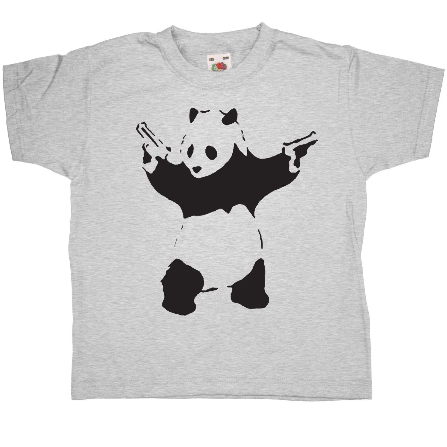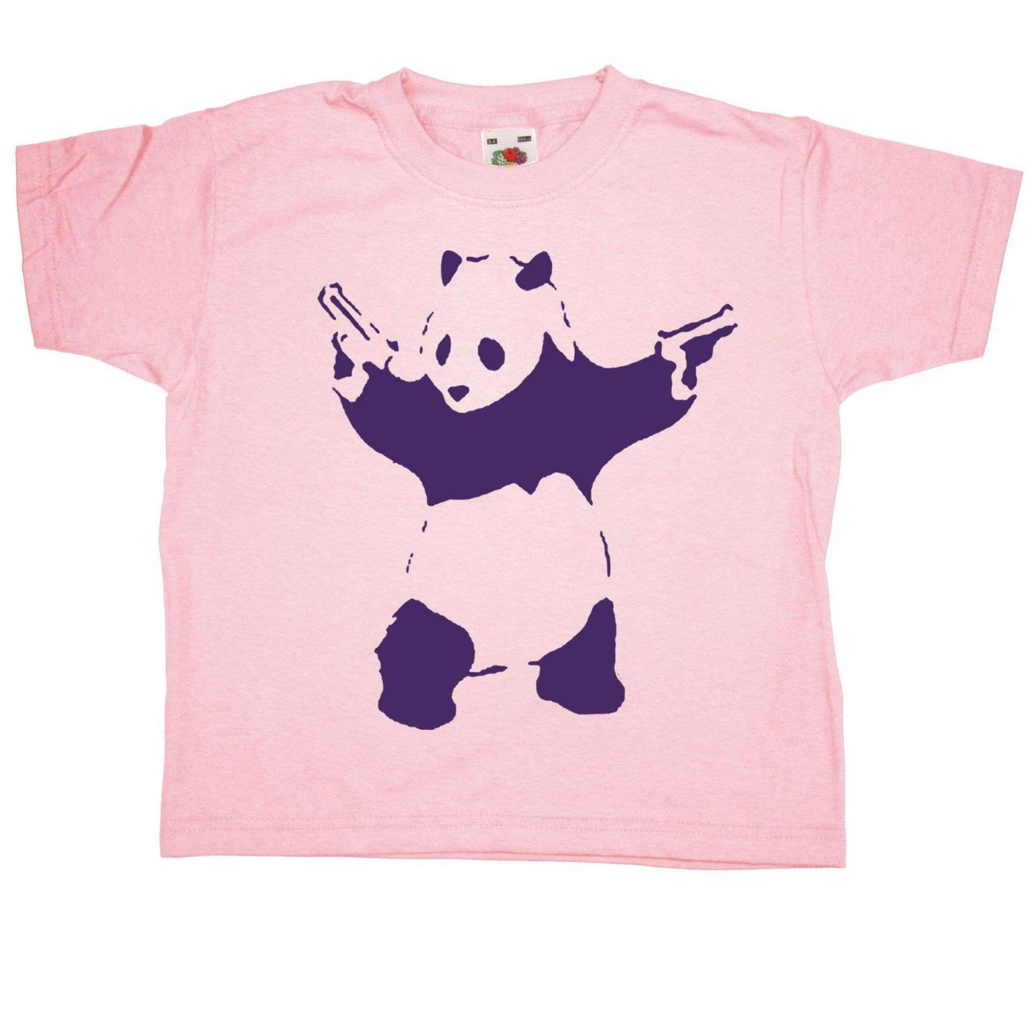 This kids Banksy tshirt has a image of one of Banksy’s designs which shows a Panda with two guns. This is a kids 100% cotton Banksy T-shirt. 10% of all royalties from our Banksy t-shirt range are donated to charity. You can find out more about the charities which 8Ball supports in the help section of our website. Thanks for your support.