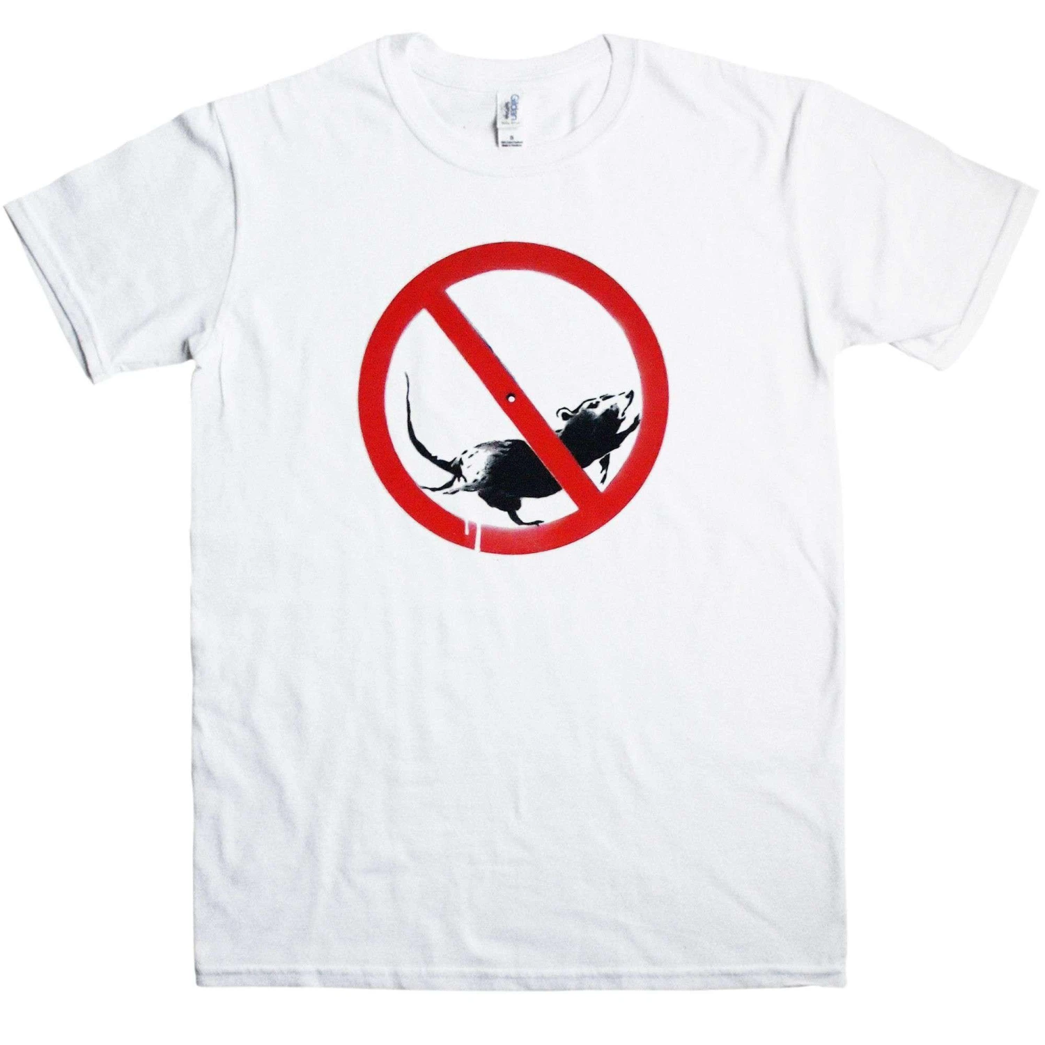 Banksy has an ability to spot something which we miss every day, such as this simple addition to the standard ‘No Entry’ street sign! With an added rat (a feature of a lot of Banksy’s work) the sign becomes a rat wheel. We don’t think we’ll ever see one of these signs again without thinking of this design! This is a 100% cotton Banksy t shirt.
