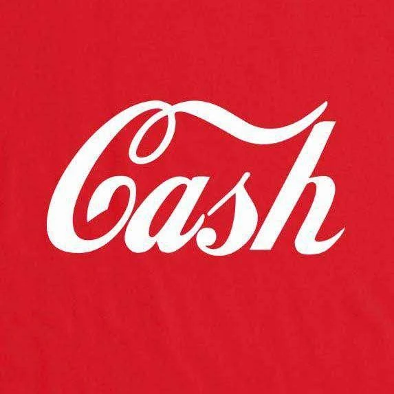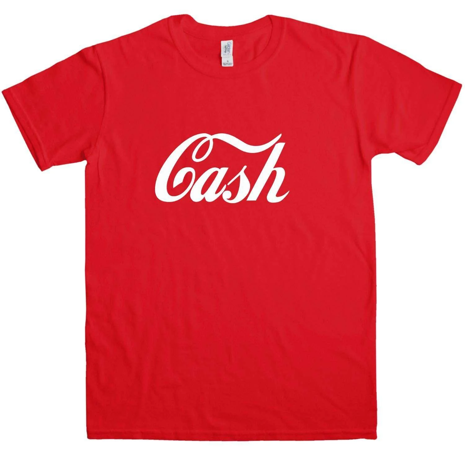 This t-shirt is inspired by one worn by Jack White, frontman of The White Stripes and The Raconteurs, and drummer of The Dead Weather. Features the slogan “Cash” in the style of a well known soft drinks company. You know the one, the famous red-and-white one. Coke. This is a 100% cotton t-shirt as worn by Jack White, not officially licensed Jack White merchandise.