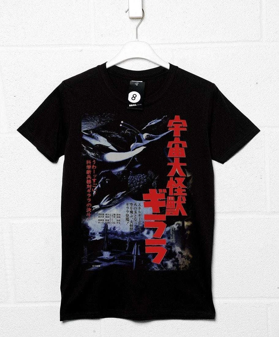 This retro style Japanese B Movie Deathray t-shirt features awesome old school artwork showing giant alien beings invading our planet, along with rockets which we are launching in our defense. Also has red Japanese writing down one side. This is a 100% cotton black Deathray t shirt.