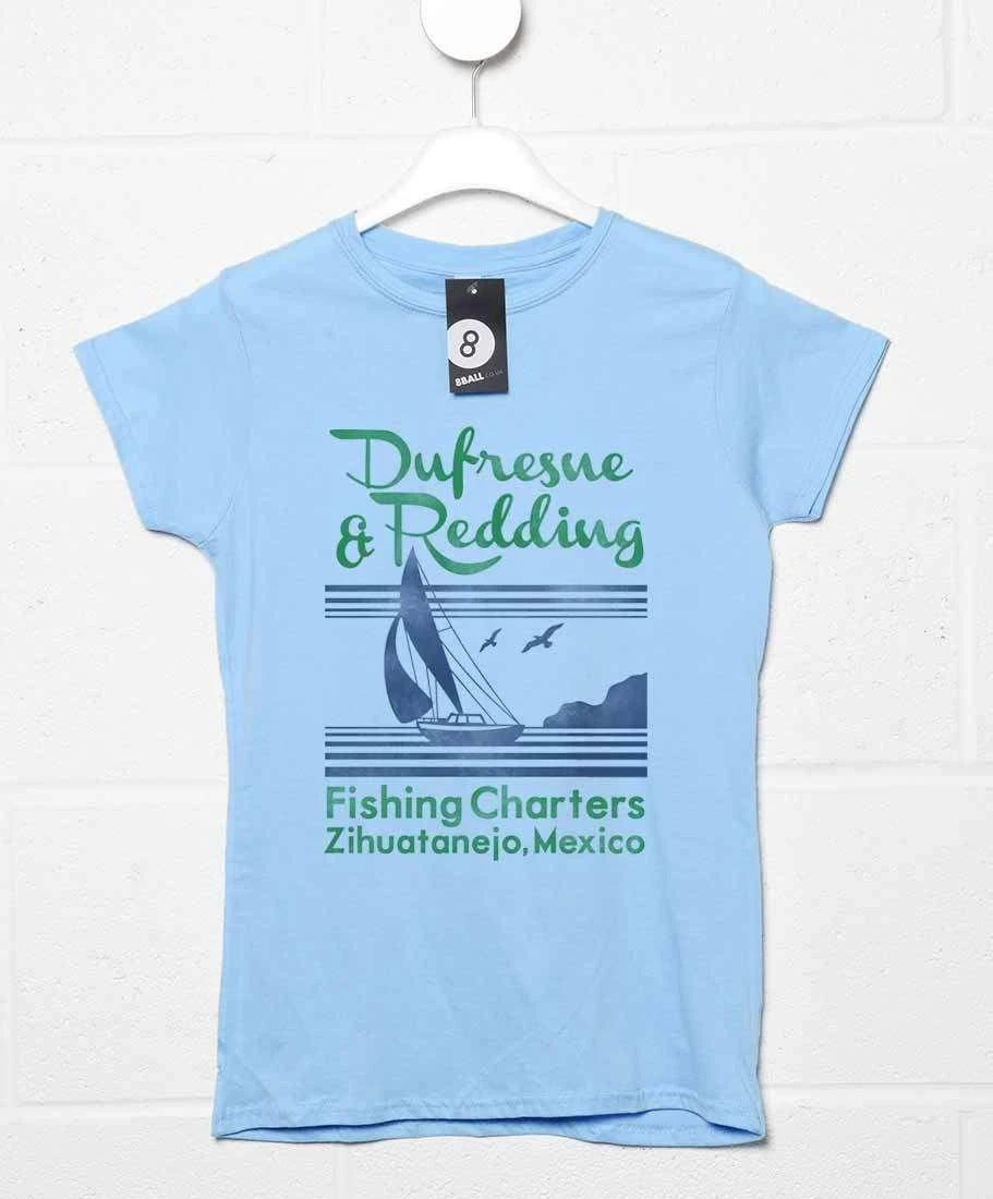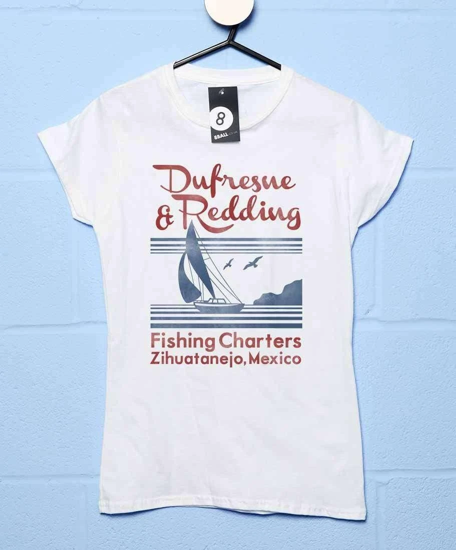 Here’s a great way to show love for a classic movie – The Shawshank Redemption. Features a distressed print of an advert for “Dufresne and Redding Fishing Charters, Zihuatanejo, Mexico.” In the film Andy Dufresne (Tim Robbins) and Ellis Redding (Morgan Freeman) are serving life in Shawshank Penitentiary but dream of living in Mexico and owning a hotel and a boat to take guests out fishing. The movie let us know whether they achieve their dream but this tee does! This is a 100% cotton womens tee inspired by The Shawshank Redemption, but not officially licensed.