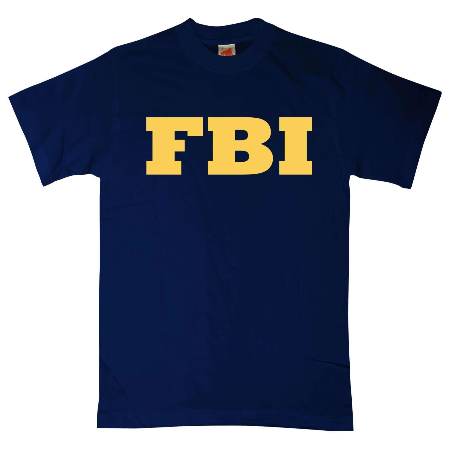 Slogan & Funny t shirts at 8Ball. FBI Logo t shirt. Navy t-shirt with yellow FBI custom made transfer.