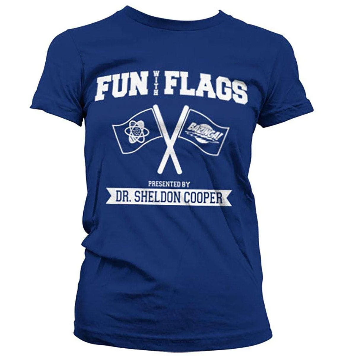 Join Dr Sheldon Cooper on a journey of the world’s most famous banners with his Fun with Flags YouTube series. This is a 100% officially licensed The Big Bang Theory fitted women’s t-shirt with a one colour screen printed heat transfer design.
