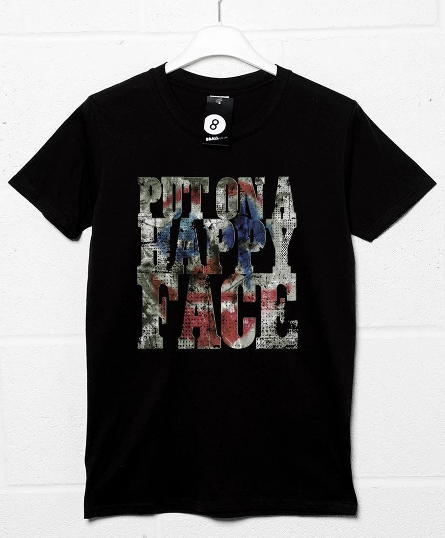 Put on a happy face with this tee featuring Mr. J’s new catchphrase, with a hint of his famous clown makeup coming through the design.