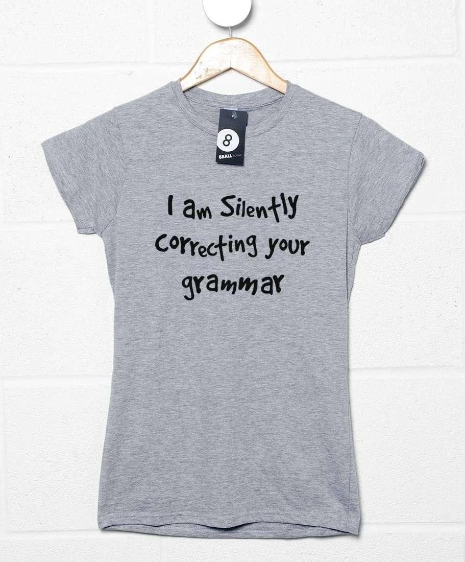Here we have a ladies t-shirt which reads ‘I am silently correcting your grammar’. There is no better t-shirt for all you ladies who wince at the thought of bad grammar! Yes, we know that this tee’s title has bad grammar within it, but Google likes all words in a title to start with a capital letter and hates inverted commas. Oh, the irony! Sorry grammar fans.