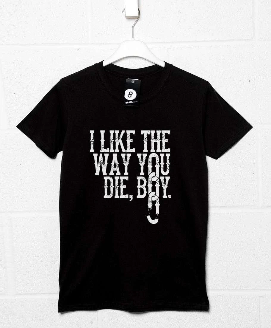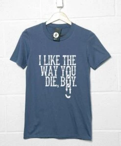 This t-shirt is inspired by visionary director Quentin Tarantino’s awesome movie Django Unchained, featuring Django’s memorable line “I like the way you die, boy”. Two of the letters are interlinked, forming a chain motif which is being broken at the bottom. This is a 100% cotton Django Unchained inspired t shirt, not an official product.