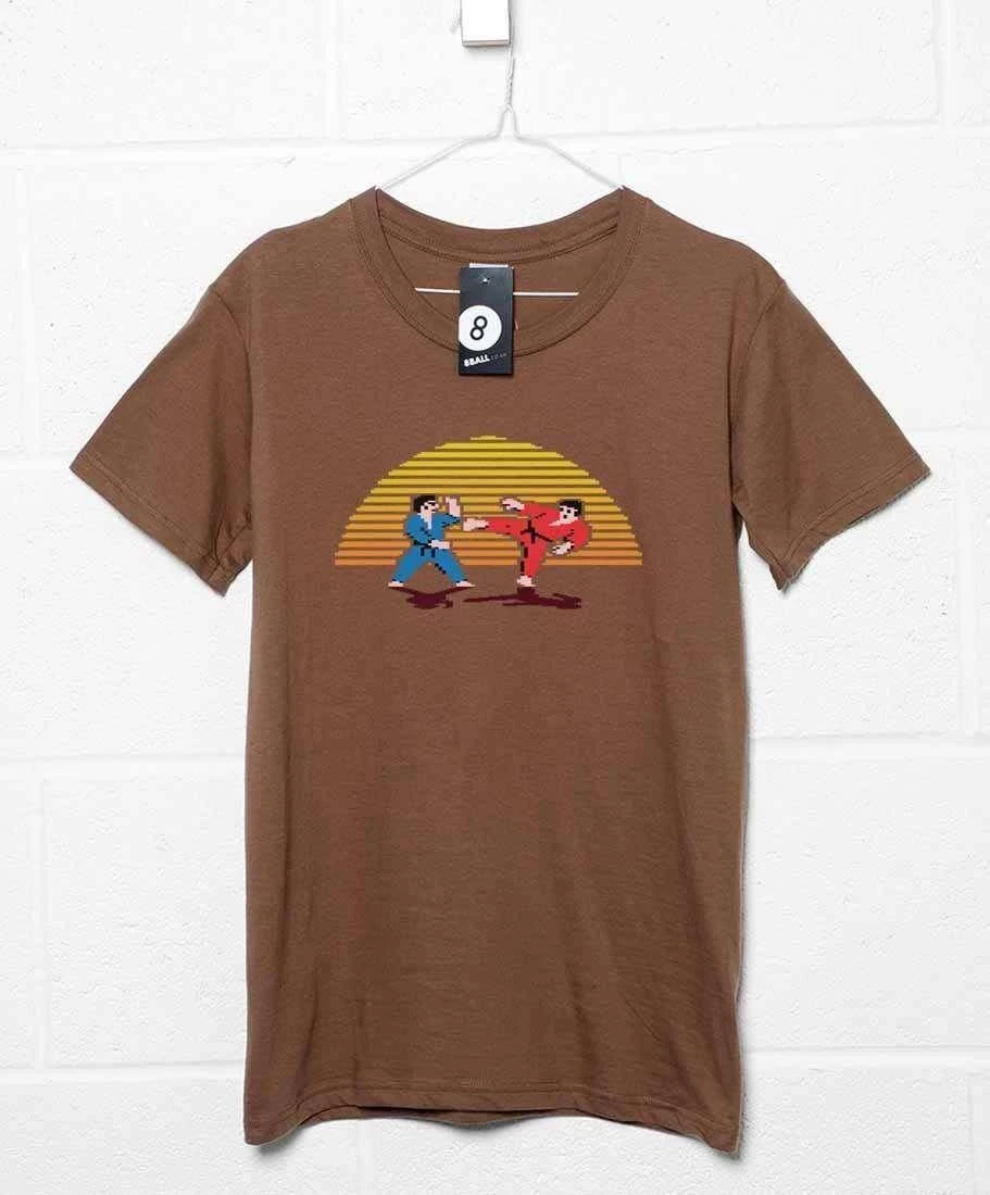 This t-shirt features karate warriors inspired by the classic beat-em-up IK+, with a digital sunset behind and shadows. Forget Streetfighter, Mortal Kombat and Tekken, when it comes to video game dust ups, IK+ was king! This is a 100% cotton t-shirt inspired by IK+ but not official merchandise.