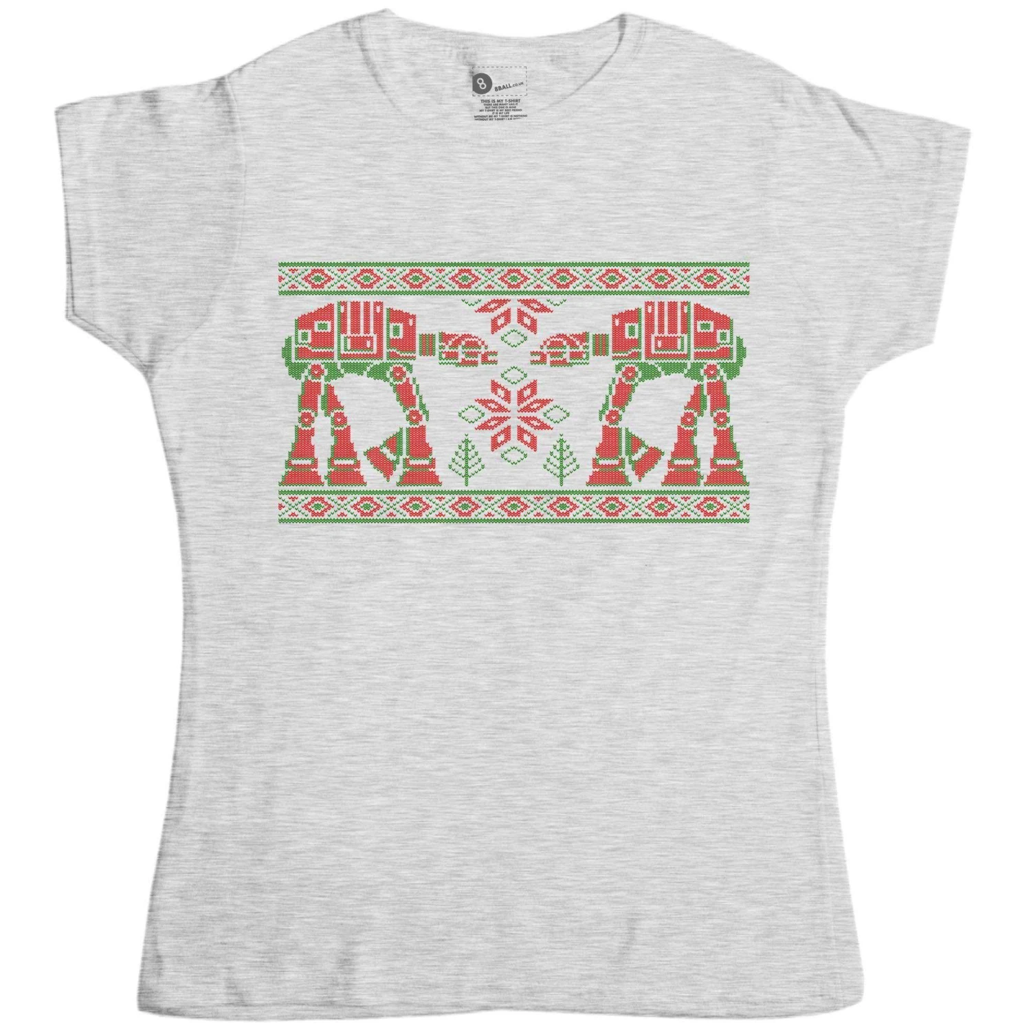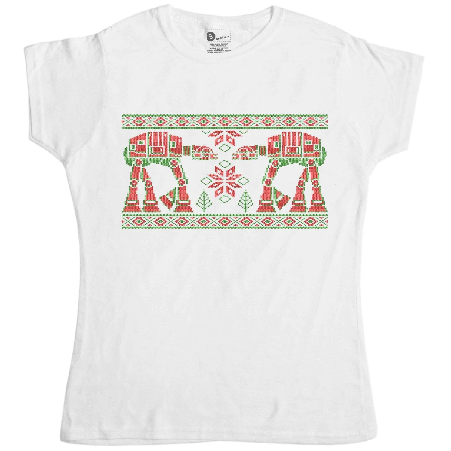 Here’s a great t-shirt for ladies in a festive mood who love the galaxy far, far away! Featuring a print that looks like a knitted sweater and shows two shambling snow walkers, this tee will put you in festive spirits while advertising which sci fi movies you like best! This is an original design, not officially licensed merchandise.