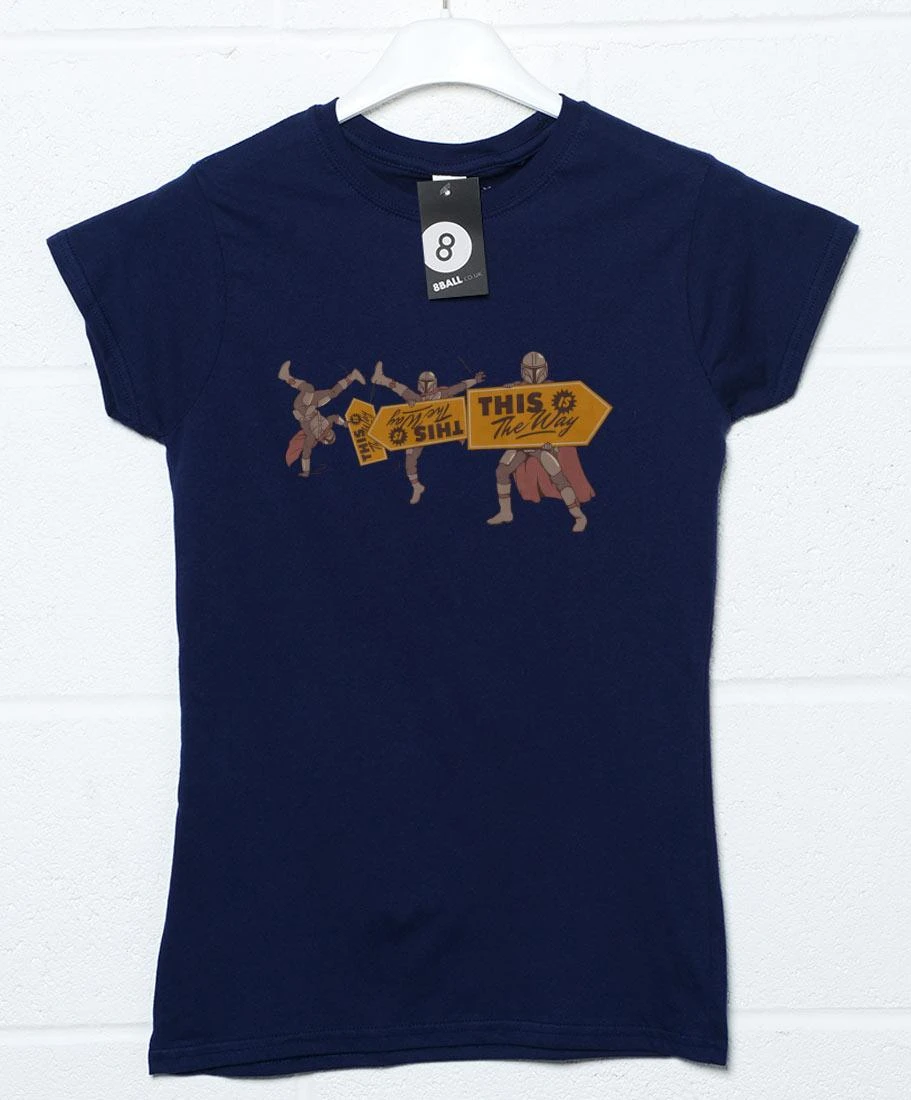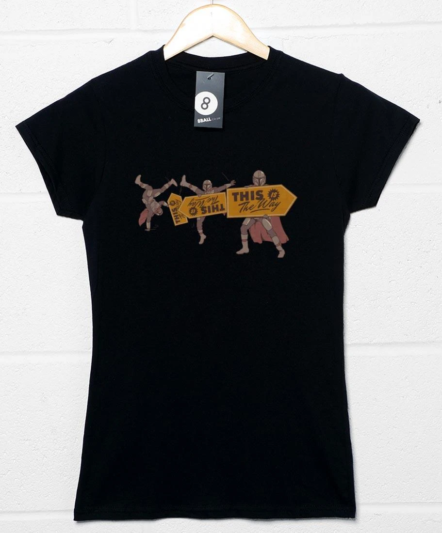 Mando Sign Spinner WomensT Shirt, inspired by The Mandalorian by Brazilian artist Mathiole. A commission from every sale goes to them.