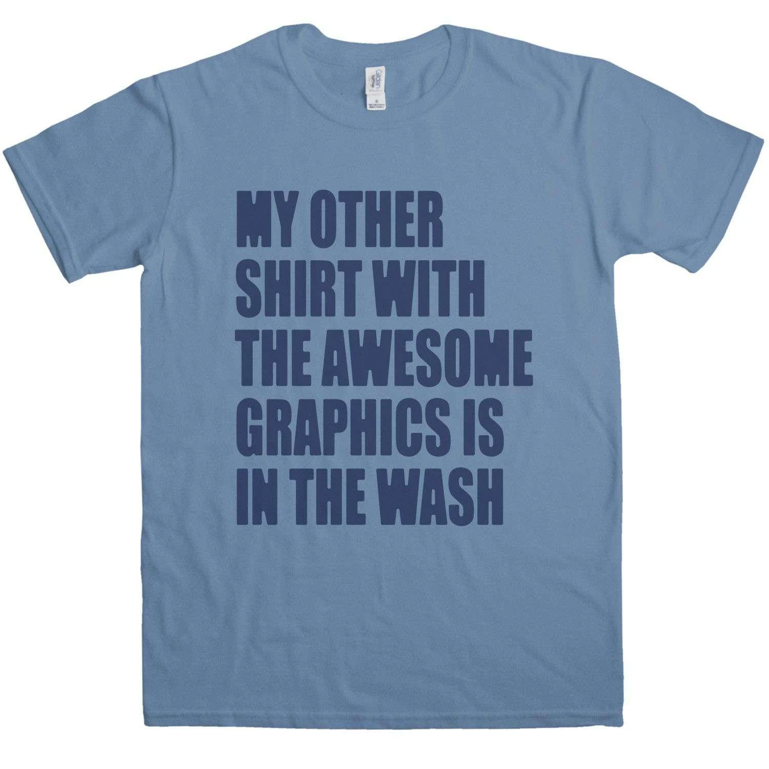 This funny t-shirt features the slogan “My other shirt with the awesome graphics is in the wash”. This is the t-shirt equivalent of the classic “my other car is a Ferrari” bumper stickers, and with it you can always claim that you really do have a very cool t-shirtt – its just in the wash! 100% cotton funny t-shirt.