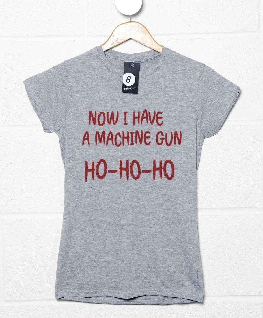 This T-Shirt is inspired by the Jumper worn by one of Hans Grubers men after John McClane has killed him. Ever one for showboating McClane uses the corpse to send Gruber the message “Now I have a machine gun, ho, ho, ho” Please note this is not an officially licensed product.
