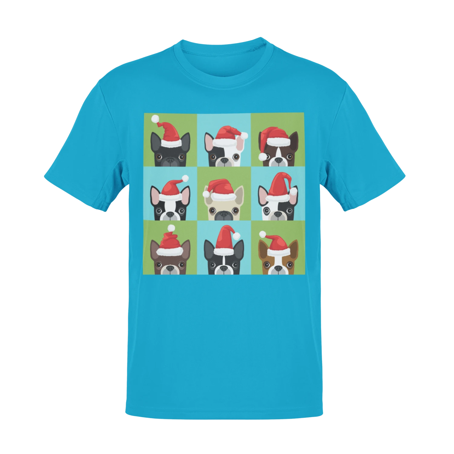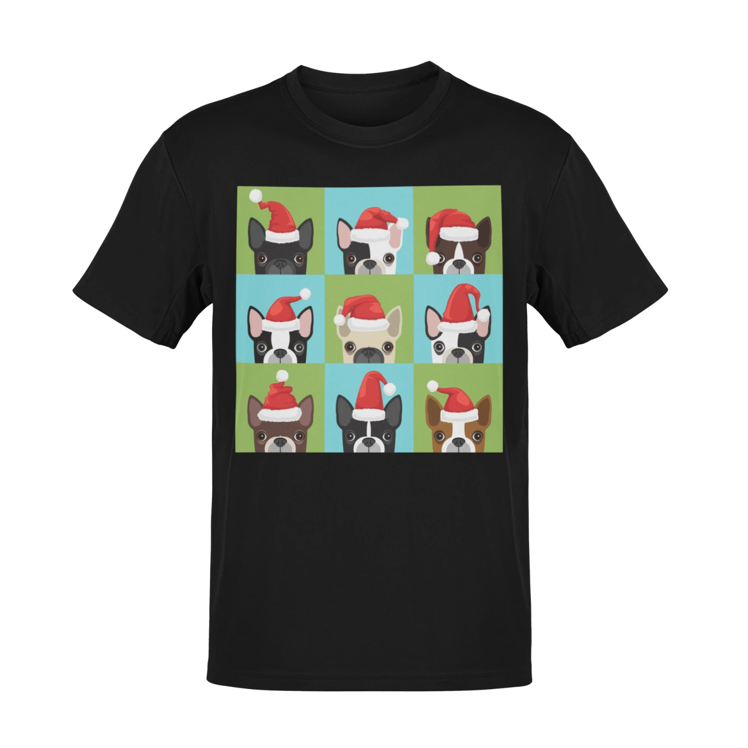 Perfect for the dog-loving pug owner in your life. Exclusive to 8 Ball T-Shirts this Christmas t-shirt design with pugs in Santa hats is fantastic for all children who love their pug.
