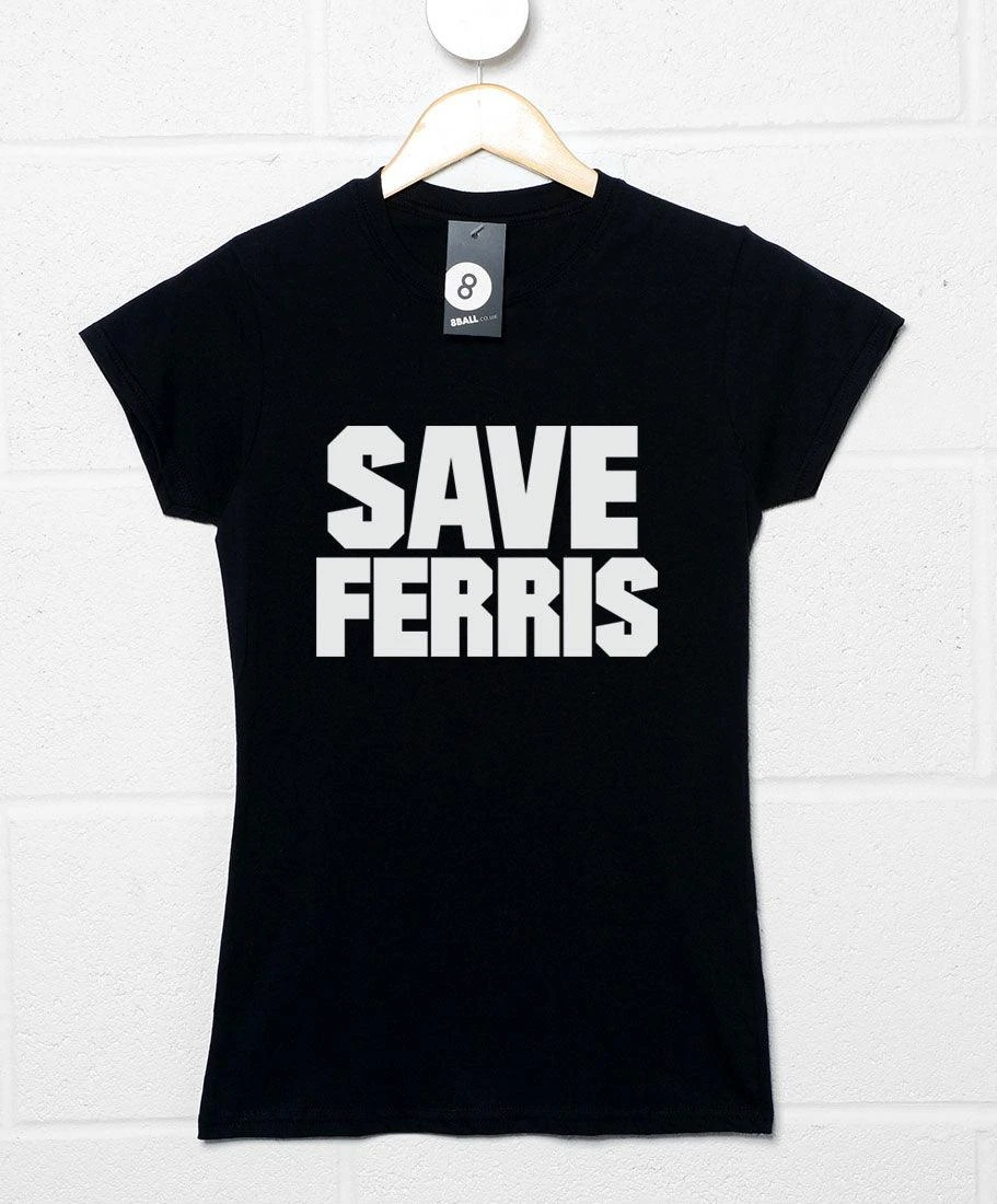 This girls Ferris Bueller’s Day Off homage tshirt features the slogan worn by Ferris Bueller’s (Matthew Broderick’s) school friends in order to support him through his illness. Ferris wasn’t really ill of course, it was just all a scam to get out of school! Features the “Save Ferris” logo on a girls 100% cotton classic fit tee.