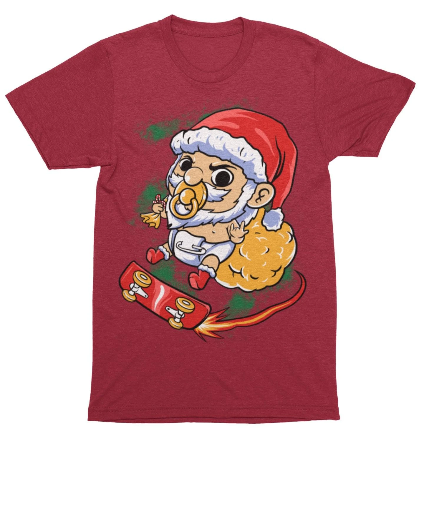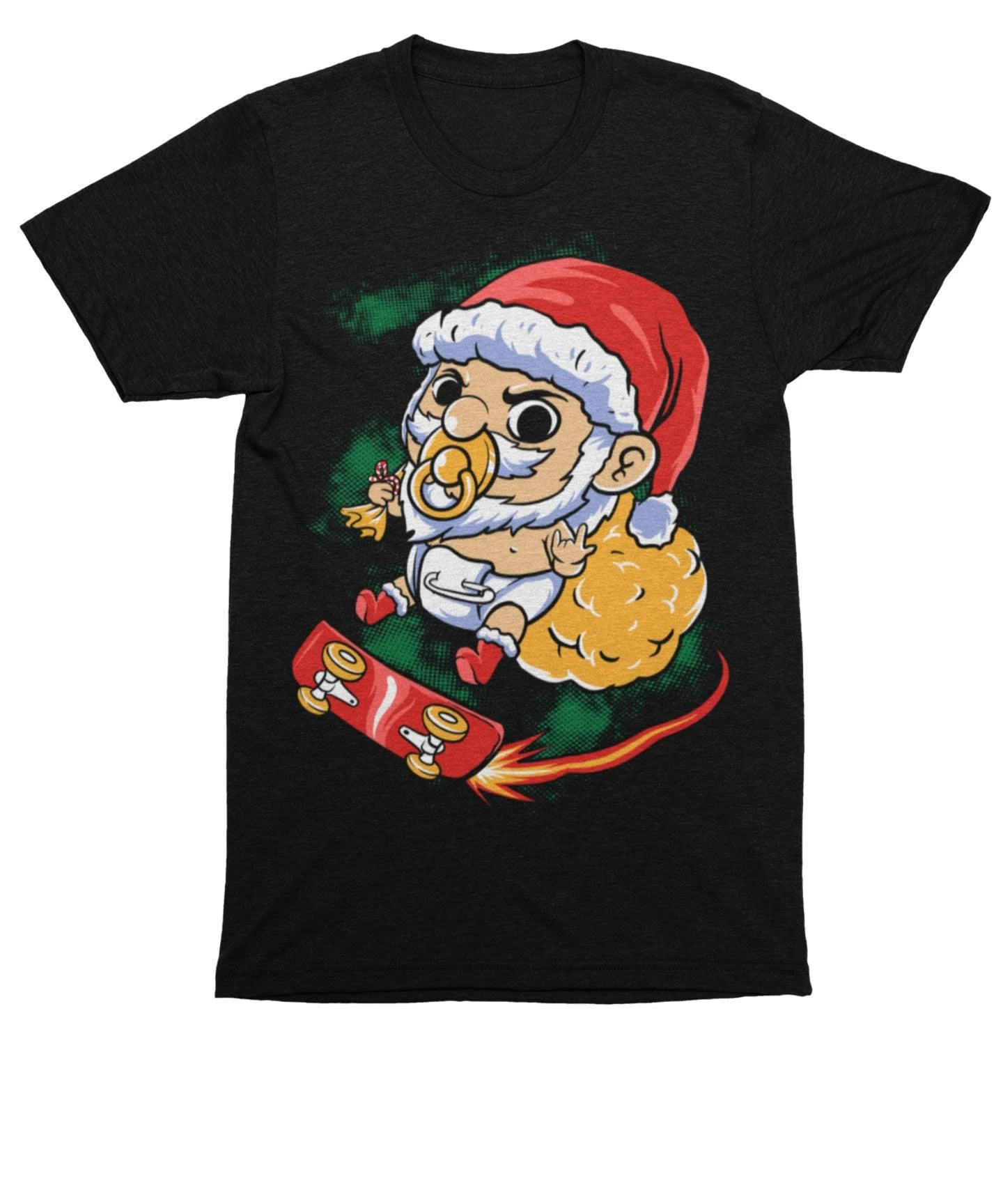 This special edition Christmas T-shirt will make an impression! Make Santa proud and bring a bit of air to the party this holiday season. Let’s ring in the new year in style with a “Skateboarding Baby Santa Unisex Christmas T-Shirt”!