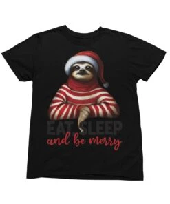 This special edition Christmas T-shirt will make an impression! Make Santa proud and bring a bit of air to the party this holiday season. Let’s ring in the new year in style with a “Sloth Eat Sleep And Be Merry Christmas Unisex T-Shirt”!