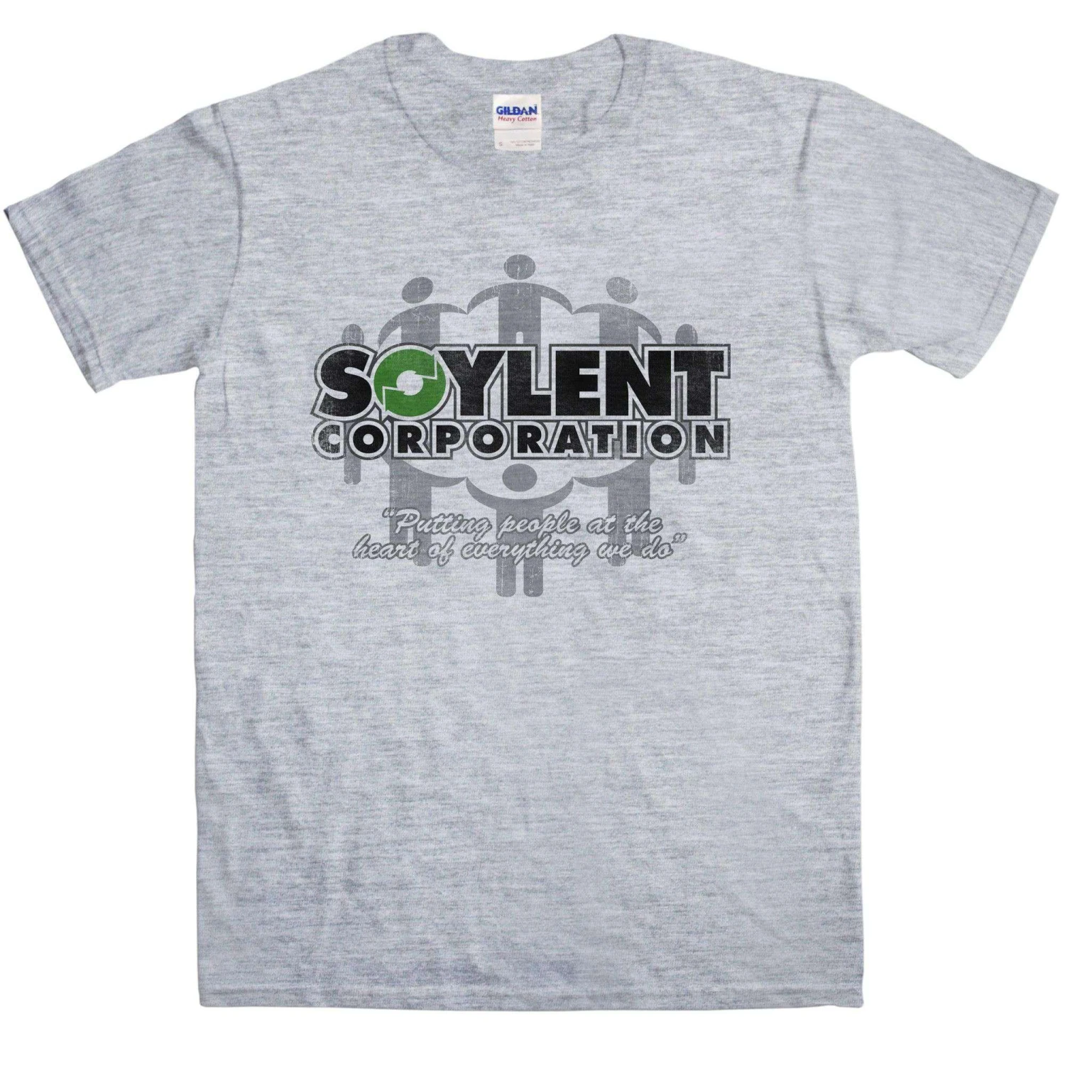 This t-shirt is inspired by 1973 sci-fi movie classic Soylent Green. Features a distressed print of a logo for the Soylent Corporation who tackle the world’s hunger crisis with their revolutionary food product Soylent Green. These are green crackers which they say are made from plankton. As discovered in the movie however, Soylent Green is actually made of people! This tee also has the slogan “Putting people at the heart of eveything we do”. See what we did there? This is a 100% cotton Soylent Corporation t-shirt inspired by Soylent Green, not officially licensed.