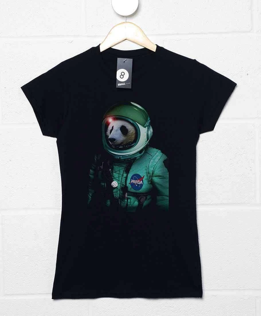 This ladies t-shirt is a homage to the many bold pandas who were fired into space in the 1960’s and 70’s. Many of us are aware of the chimps and dogs used by the US and Russia in their space programmes but less famous are the hundreds of pandas who flew many of the early space flights. Some conspiracy theories even have it that Neil Armstrong was actually a Panda and that the American government covered it up. Shows a Panda dressed in his space suit, complete with a ‘PANDA’ logo in the style of the NASA logo. This is a girls classic fit 100% cotton black space panda tshirt.