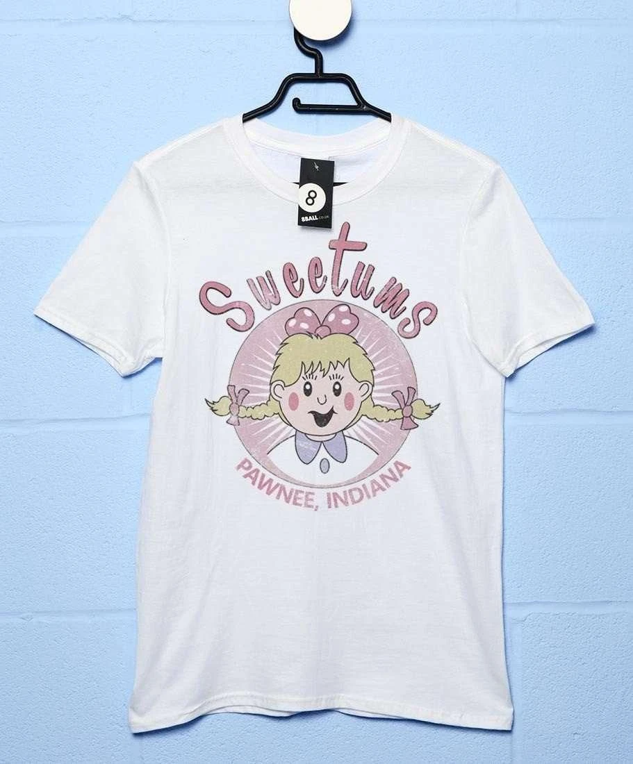 The Sweetums company sells harmless, delicious products to the townspeople of Pawnee, Indiana; such as Nutri-Yum bars, Kandy Nailz (candy-covered fingernails) and of course Sugar Splash available in sensible sizes up to the ‘child size’ 512oz serving (so called because it’s roughly the size of a liquidised child). Show some love for Sweetums with this retro-look t-shirt; inspired by Parks and Rec, not official.