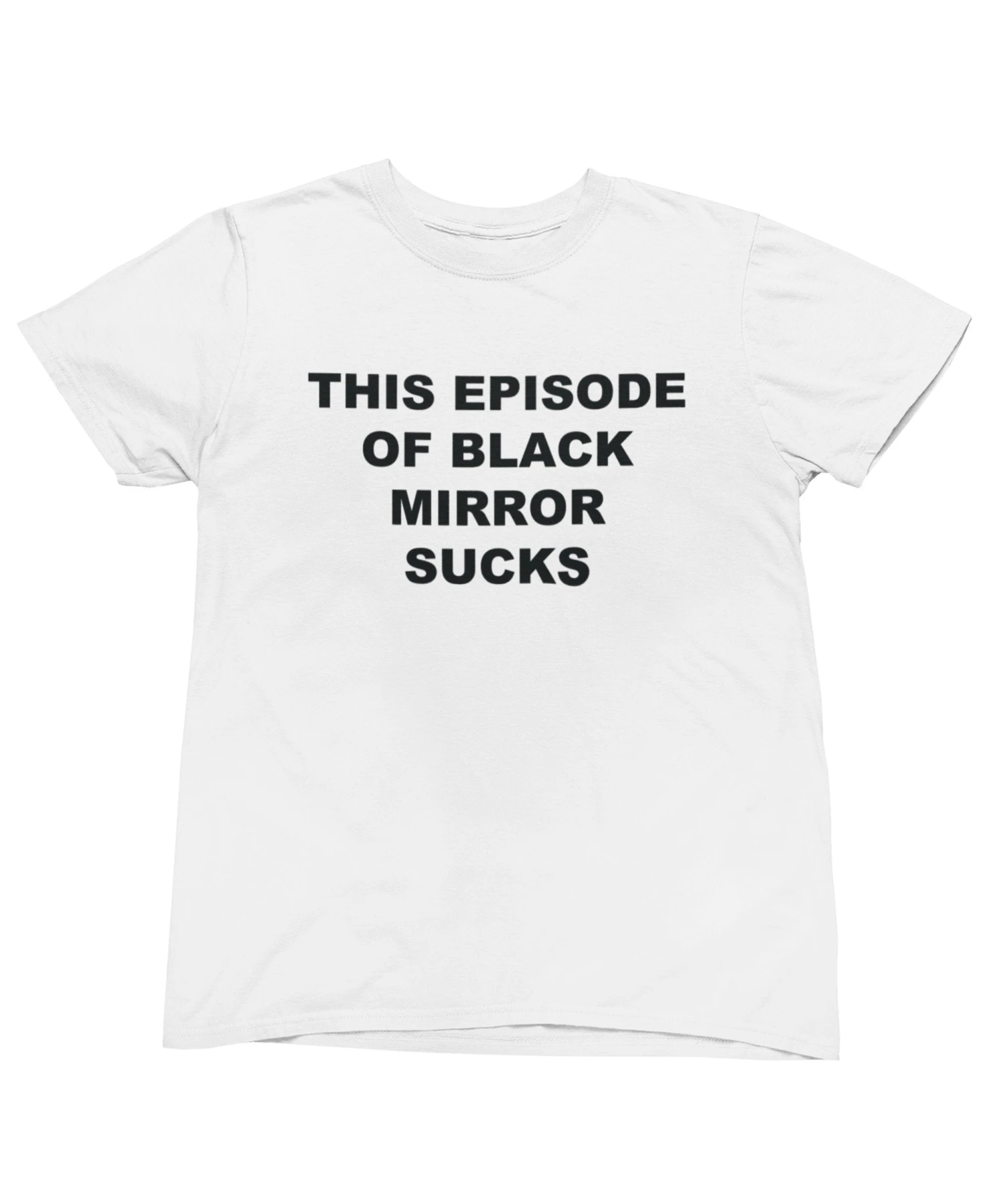 Ever felt like you’ve stumbled into Charlie Brooker’s genius scifi show Black Mirror? It wouldn’t be surprising with everything happening in the world now. Now you let everyone know the real world is turning into a black satire with this tee that reads, “This episode of Black Mirror Sucks”.
