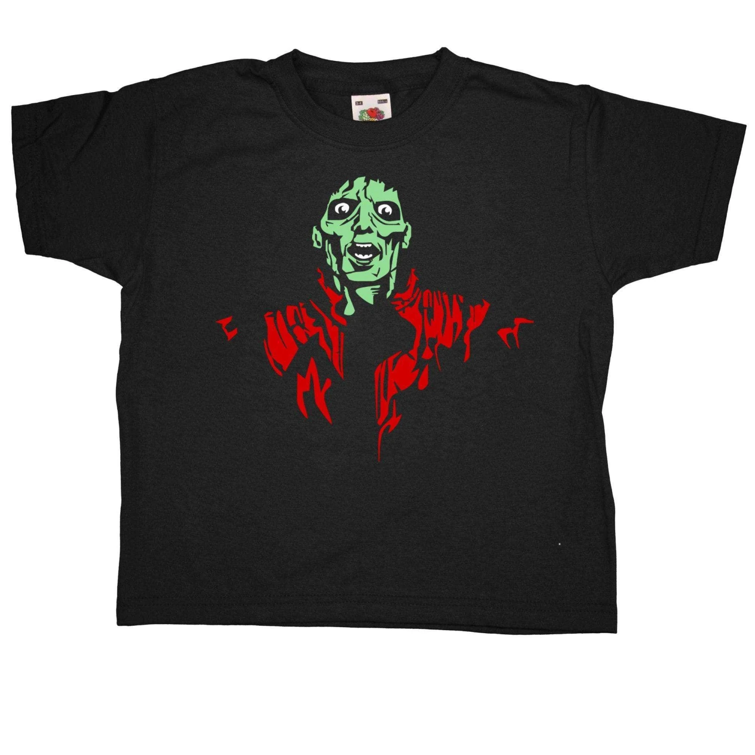 This Kids Thriller homage t-shirt features a picture Michael Jackson as he appeared in the global smash hit ‘Thriller’ video as a scary zombie dancer. This is a kids 100% cotton Thriller inspired t shirt. 100% unofficial.