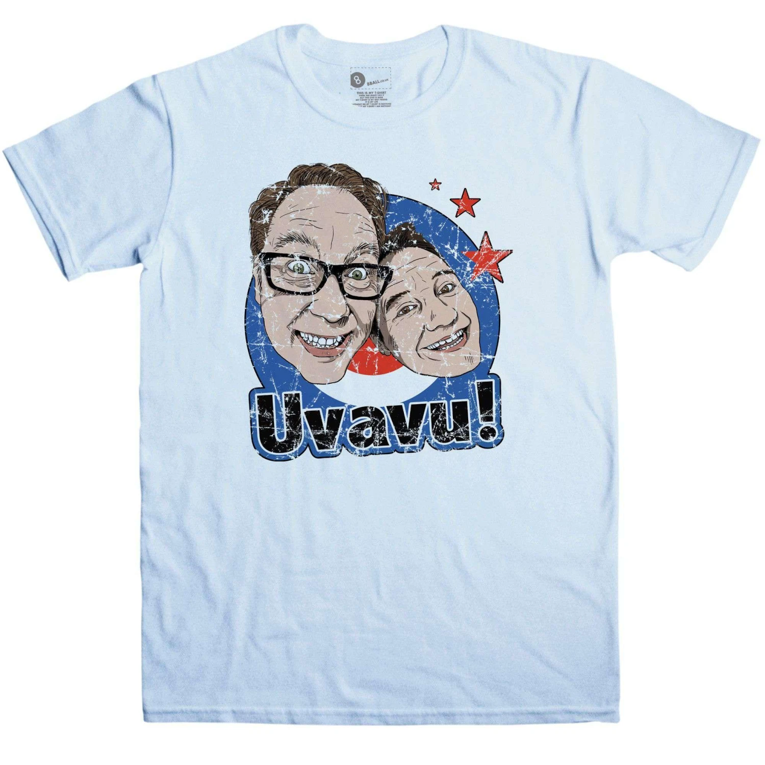 This retro tee takes us back to the Vic Reeves and Bob Mortimer days with Shooting Stars the hilarious tv panel game show. The pair’s slapstick, surreal and anarchic humour didn’t rely on rules to function with them making their own rules on the way. This t-shirt features one of the catchphrases often used in the show ‘Uvavu.’ This illustrated design has a distressed overlay giving a retro feel to the overall design.