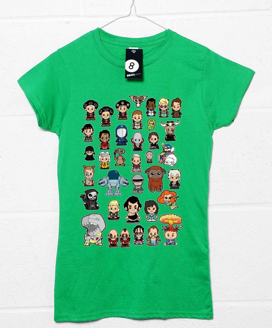 If you’re a child of the eighties then this is the one for you! Featuring Top Notchy’s cartoon-style recreations of all themostnostalgic pop culturecharacetrs from the greatest ever decade part 2, thisladies fitted-style t-shirt will let you showsome love for them all at the same time!